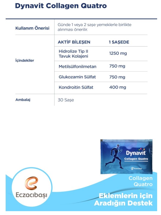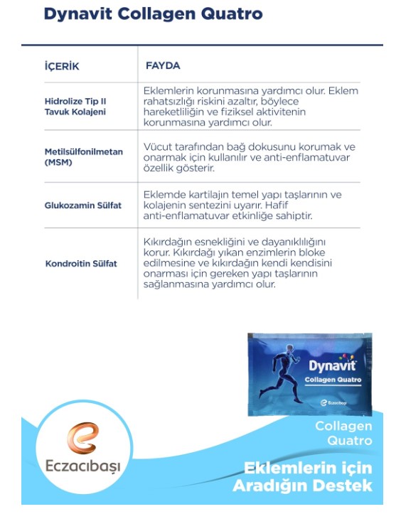 Dynavit® Hidrolize Kollajen, Glukozamin Sülfat, Kondroitin Sülfat ve Metilsülfonilmetan İçeren Saşe Takviye Edici Gıda