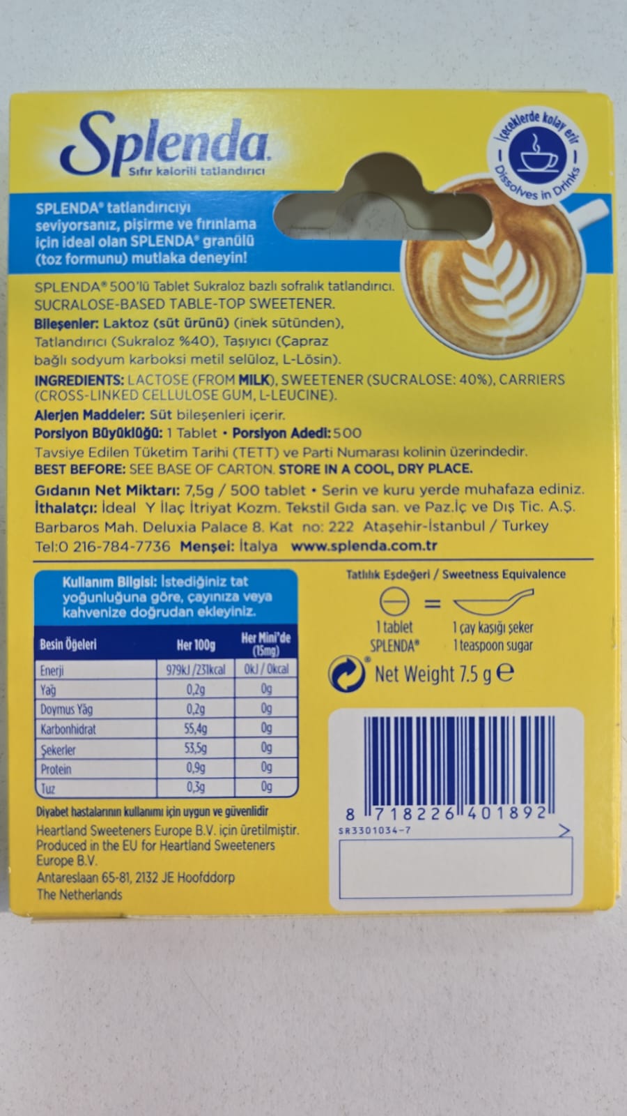 Ana Sayfa Gıda takviyesi-Vitamin-Kişisel Bakım Sağlık / Kişisel Bakım Besin (Gıda) Takviyeleri & Vitaminler Splenda Tatlandırıcı 500 Tablet
